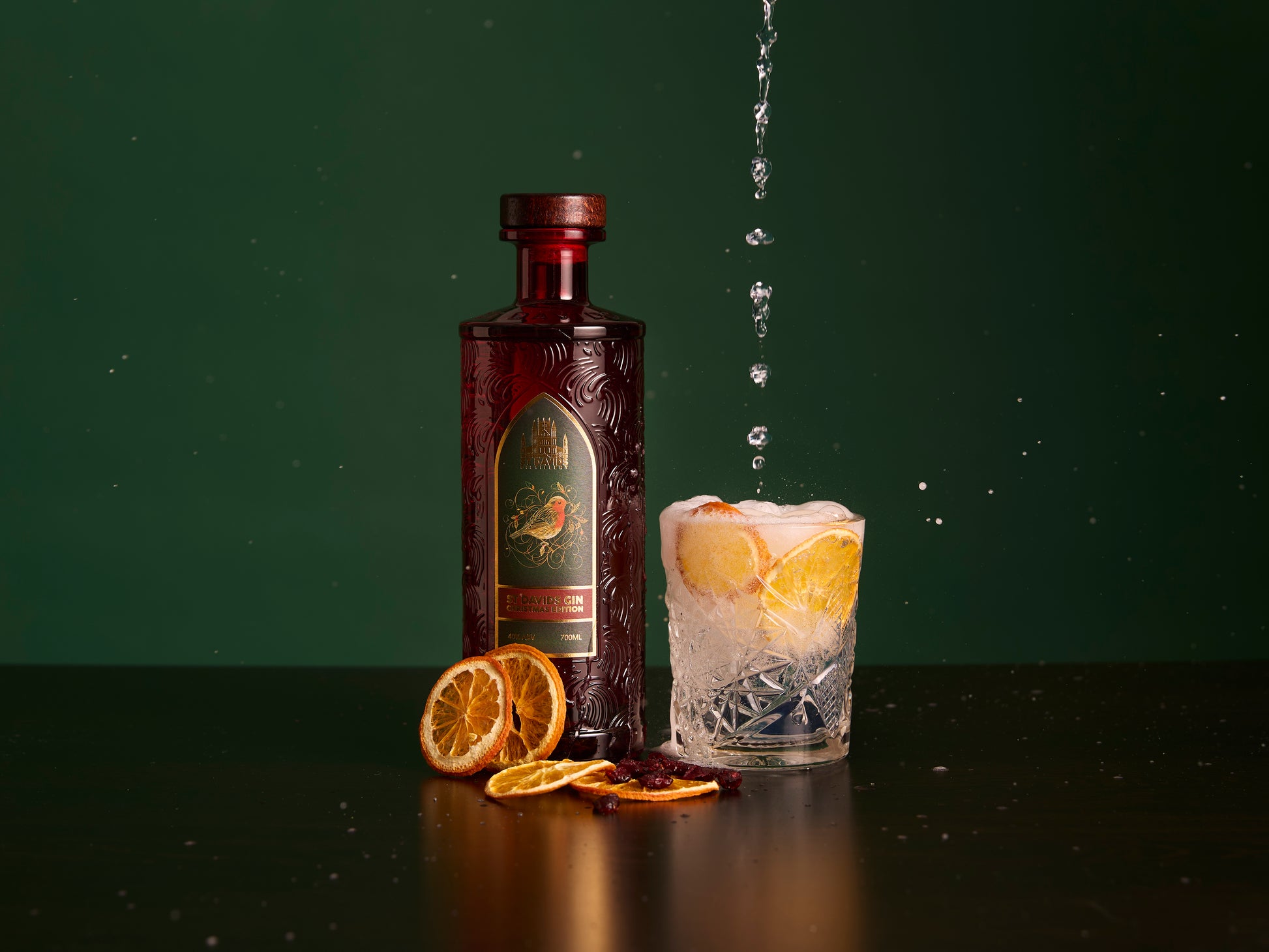 Botanicals: Enebær, korianderfrø, appelsinskal, kanel, krydrede vinterurter, citrusnoter og naturlig sødme fra bærsirup.